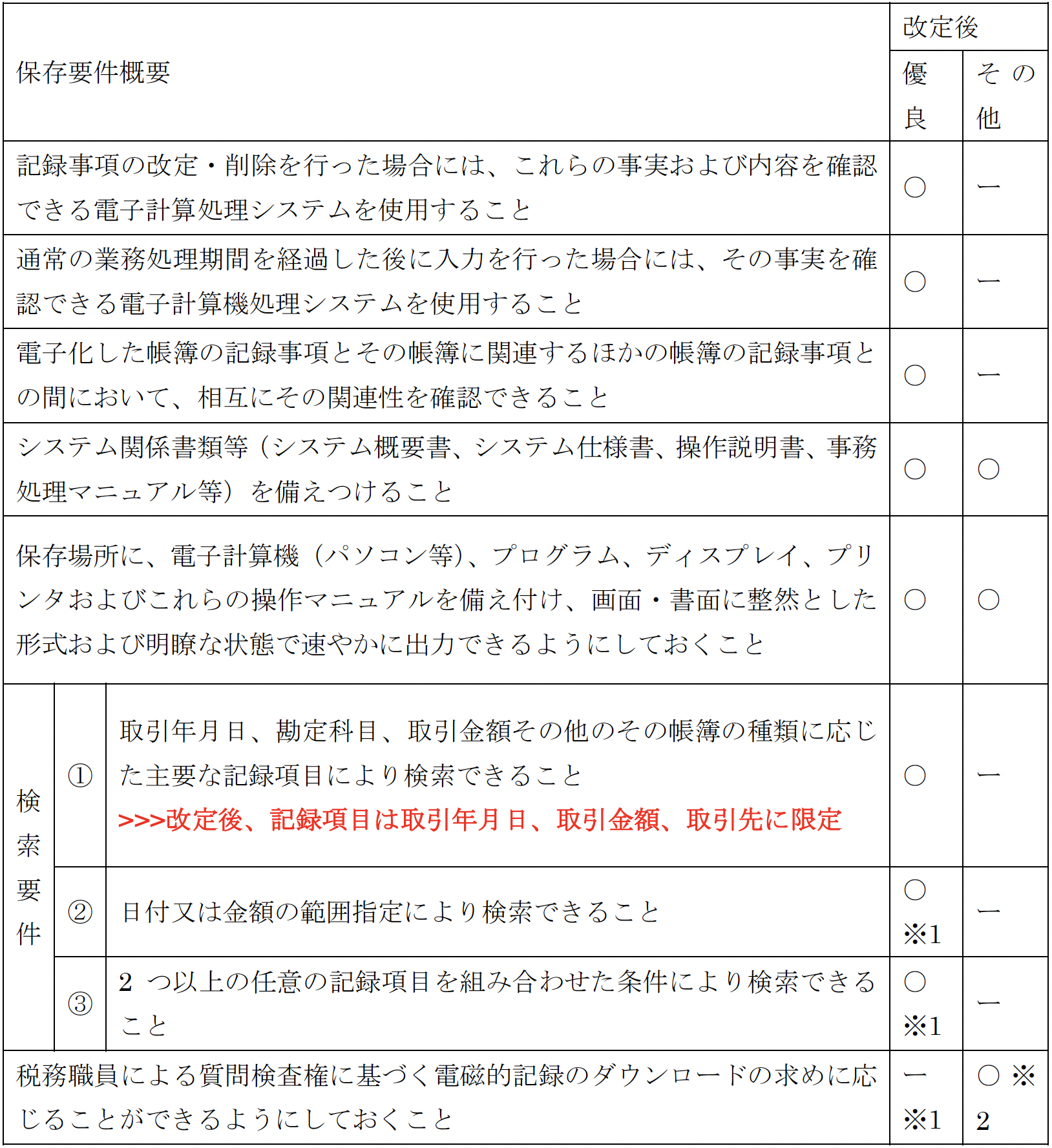 ※1 保存義務者が、税務職員による質問検査権に基づく電磁的記録のダウンロードの求めに応じることができるようにしている場合には、検索要件の うち②③の要件が不要となります(後述のスキャナ保存及び電子取引についても同様です。)。