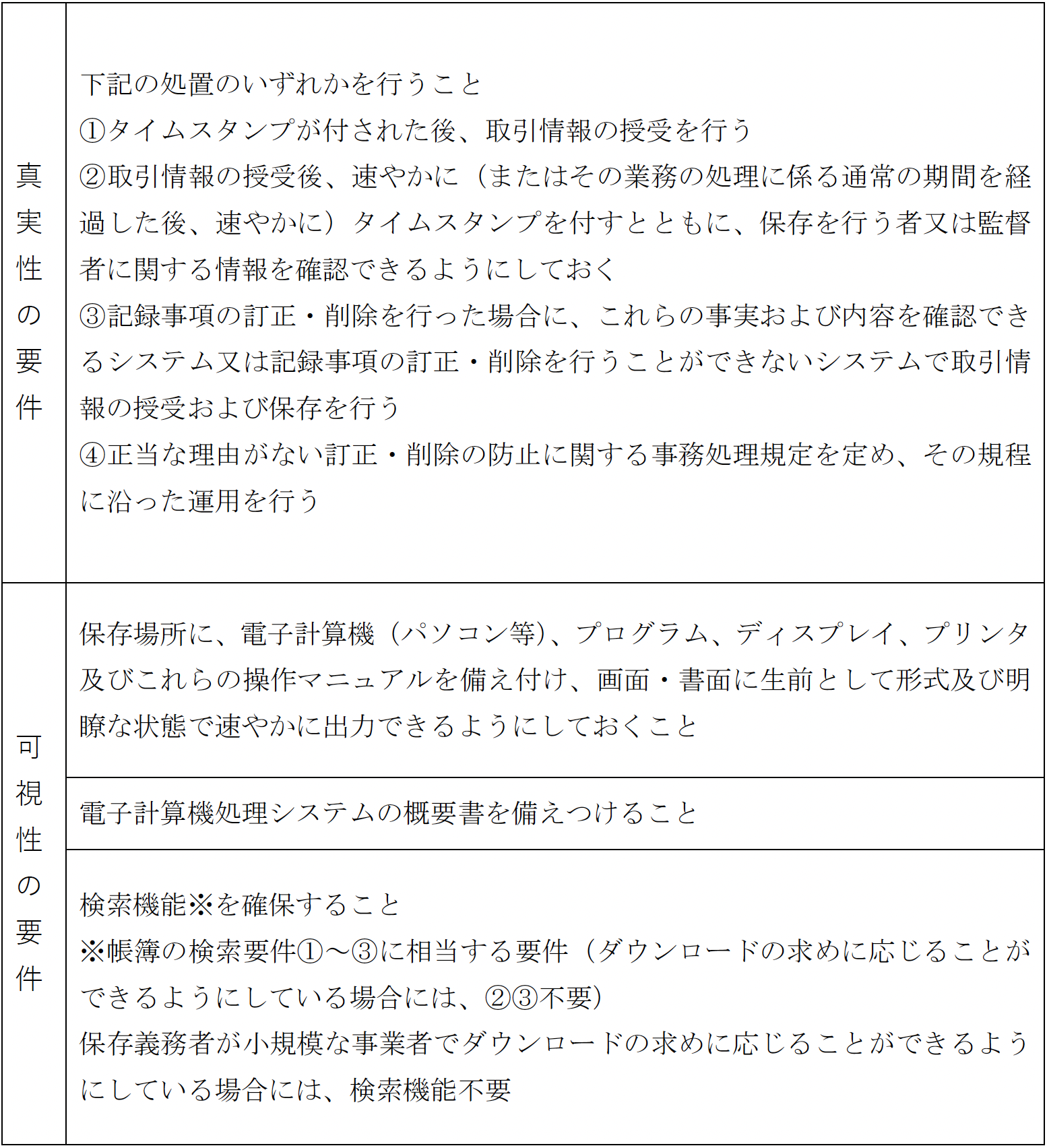 電子データで保存する場合には、改ざん防止、検索機能を確保が必要です。