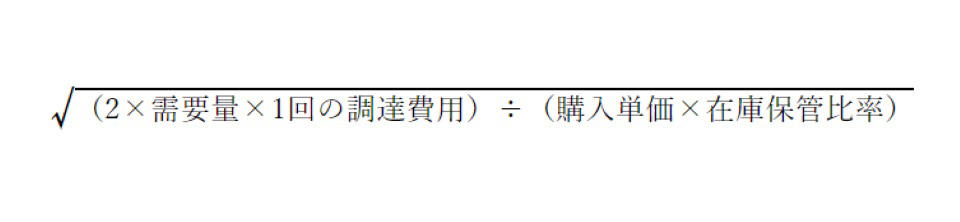 最適発注量は下記の式で求められます。在庫保管比率とは、購入単価に対して保管費用がいくらかかるかの割合を指します。