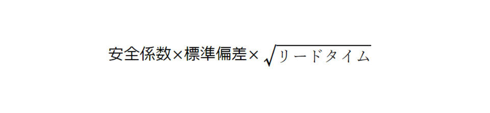 より正確な安全在庫は下記の式で求められます。安全係数とは、在庫切れになる可能性をどこまで許容できるかを数値化したものです。