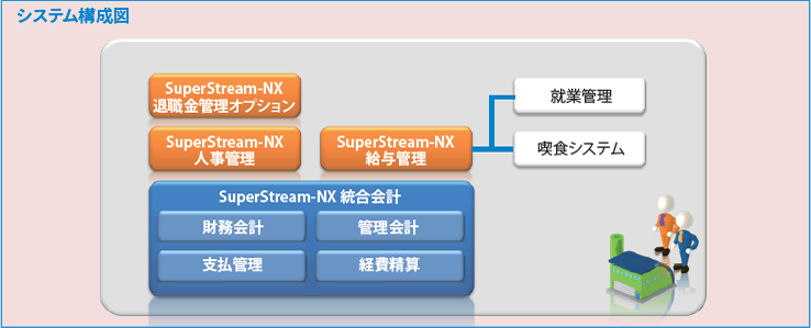 現在はSuperStream-NX 統合会計をはじめ、人事管理や給与管理、退職金管理オプションを導入し、財務会計業務、支払管理・経費精算管理や人事情報の管理、給与計算や退職金管理を行っている。