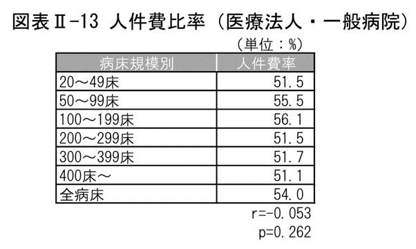 病院の売上高に対して、人件費の比率が高すぎると経営が厳しくなるリスクが高まります。厚生労働省が発表した「病院経営管理指標に関する調査研究結果 」によると、一般病院の人件費比率は平均54%となっています。