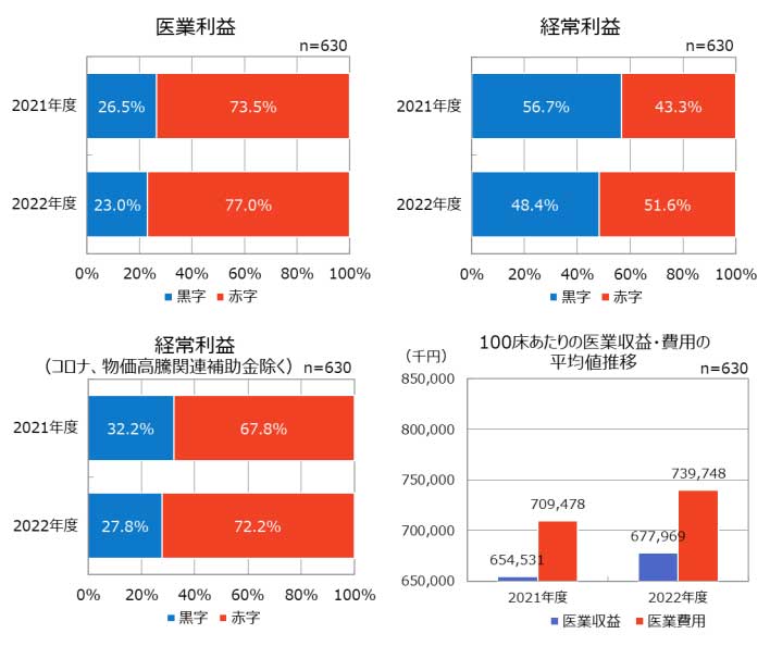 医療機関経営状況調査(一般社団法人 日本病院会、公益社団法人 全日本病院協会、一般社団法人 日本医療法人協会)